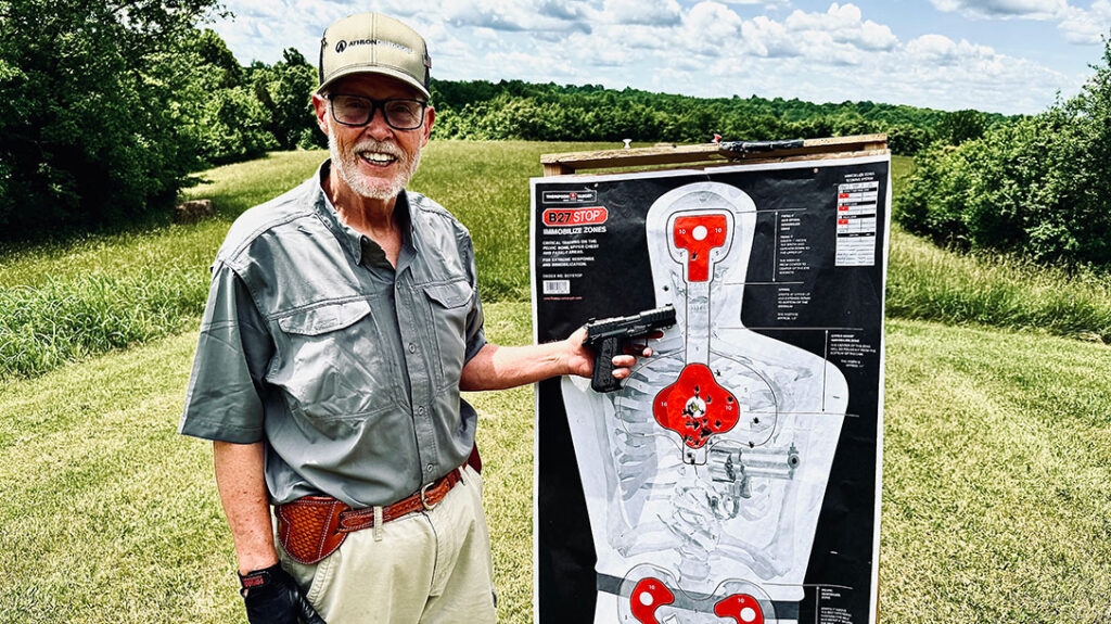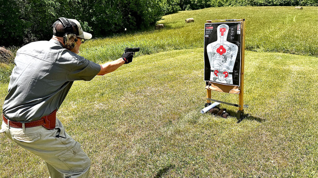 Then, I moved up to within 3 yards of the target and drew the Vulcan 9 from the holster. After taking a step to the right, I engaged the threat with six rounds, shooting in an instinctive/close-quarters manner, using my strong hand only.