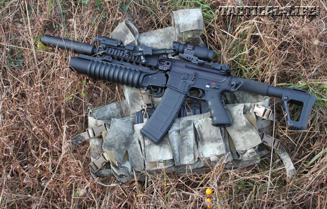 In the upcoming April 2014 issue of SPECIAL WEAPONS FOR MILITARY & POLICE, author Todd Burgreen test-fires LMT’s new M203 2003 grenade launcher, which is a significant improvement over the U.S. Army’s current M203 launchers.
