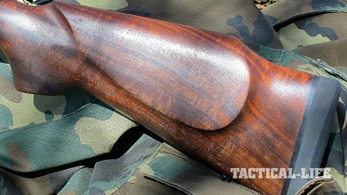 The M40-66 rifle is more of a nod to nostalgia in overall configuration and title than any attempt to reproduce a line-by-line original M40. It offers the look of the older M40, but with far superior construction and performance by using modern upgrades. It begins with a walnut Monte Carlo-style stock with a left-side cheekrest patterned directly from the original issued stock. Instead of the reputed military dip-and-ship finish of the 1960s, though, the wood gets a better grade of oil, and four coats of it. After each coat, the surface is sanded down with progressively finer grits of paper, leaving a dark, nicely grained, non-varnished finish.