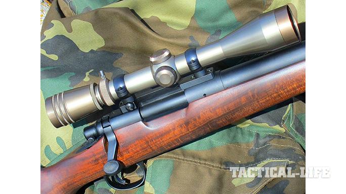 In what I thought was a neat touch, our test sample had one of the limited-edition Redfield USMC M40 Commemorative scopes already mounted via a solid-steel, one-piece Badger reproduction base and rings. These scopes are part of a 1,000-unit run for Redfield that isn’t cataloged on its website.
