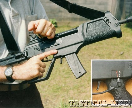 Ten years ago shooting a few hundred rounds with the Magal at Instituto de Ensino de Segurança do Pará’s range in Belém was uneventful. At about 8.82 pounds loaded the carbine was no lightweight. Its heft made recoil mild. Offhand quick-reaction accuracy at urban-encounter ranges of 98 to 164 feet was solid: this average shooter saw all bullets consistently grouping center-of-mass on the paper target.