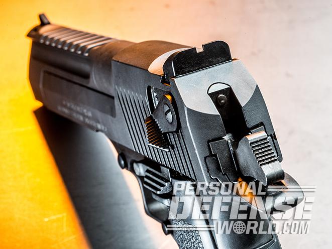 There is also an ambidextrous, slide-mounted thumb safety on this semi-auto. I found it far much easier to engage and disengage with my support hand as opposed to using my strong-hand thumb from a firing grip. In any event, the Desert Eagle’s manual recommends carrying the gun with an empty chamber.