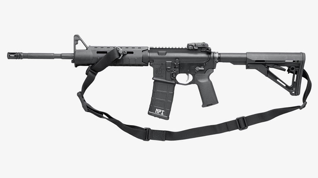 The MS1 is a very versatile sling. Using adapters available through Magpul, you can configure it into either a traditional two-point sling or a one-point.