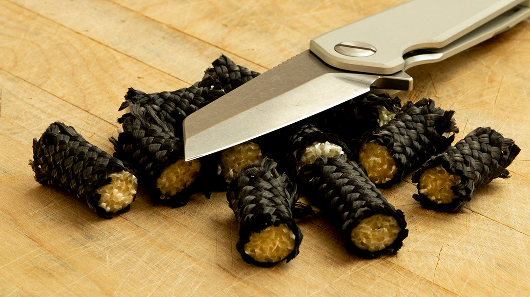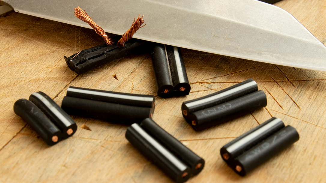 I then moved on to a test of the edge retention, by cutting an old power cord and stripping a small section. Using a rubber mallet, I batoned the edge through the cord at different points on the edge. After I had cut off six pieces, I took a close look at the edge and found no dulling, curling or deformation.