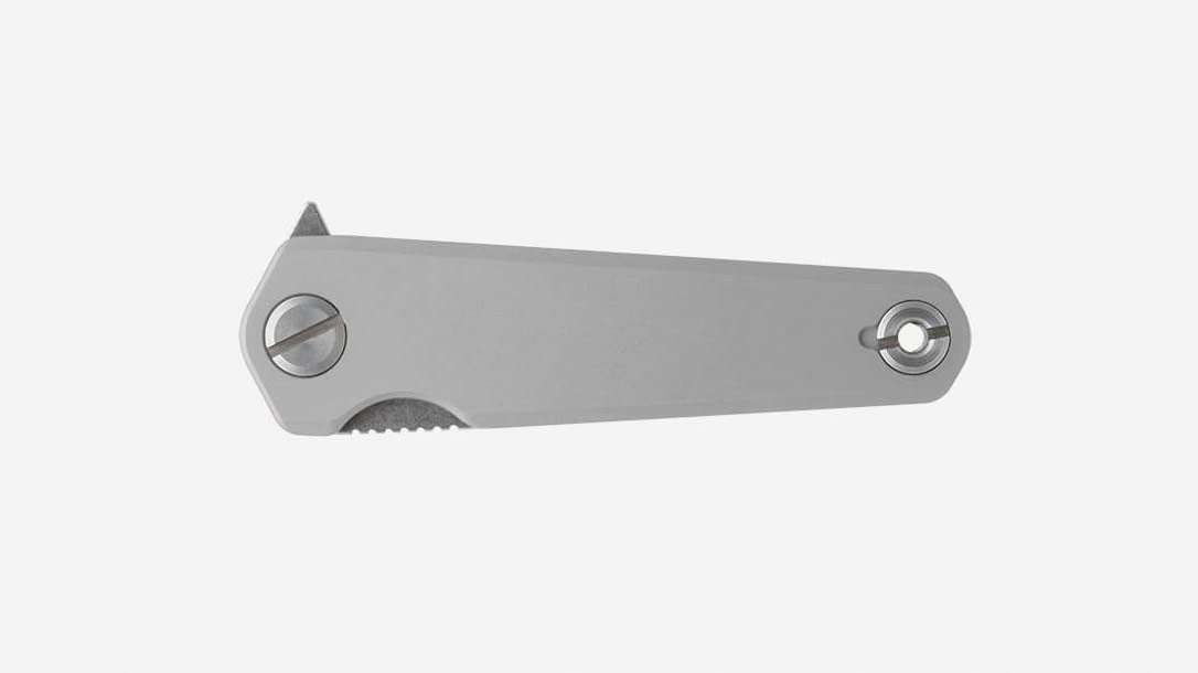 Finally, for purposes of easy maintenance, the Rigger utilizes only two screws in its construction. Both screws feature a large, flathead design, allowing for easy removal with a large flathead screwdriver or penny.