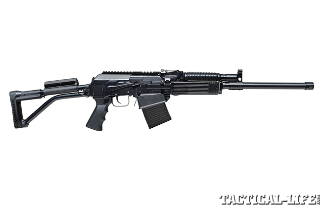 The VEPR 12 is the newest AK-based shotgun that utilizes detachable box magazines, joining the likes of the earlier Saiga platform. Built in the same MOLOT factory that makes the Russian military RPK, the VEPR 12 (available from Wolf Performance Arms) has got a heavier-duty receiver and fires 12-gauge ammo from a five- or 25-round box magazine. Also note the VEPR 12’s folding, skeletonized stock with a polymer cheekrest as well as the grooved pistol grip. The VEPR 12 has AK-style sights as well as a Picatinny top rail. (wolf-arms.com; 888-757-9653)