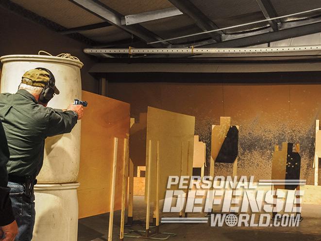 At first, however, run through the numbers, never taking your eyes from center mass of your target—where your eyes go, so too will the muzzle point. When your pistol is at full extension, refocus your eyes on the front sight. See where it is in relation to the rear sight and adjust accordingly. If it’s way off, try to figure out why. Is it a problem with your grip being either too high or low? Is there a problem with transitioning from one specific grip angle to another, like moving from a Glock to a revolver?