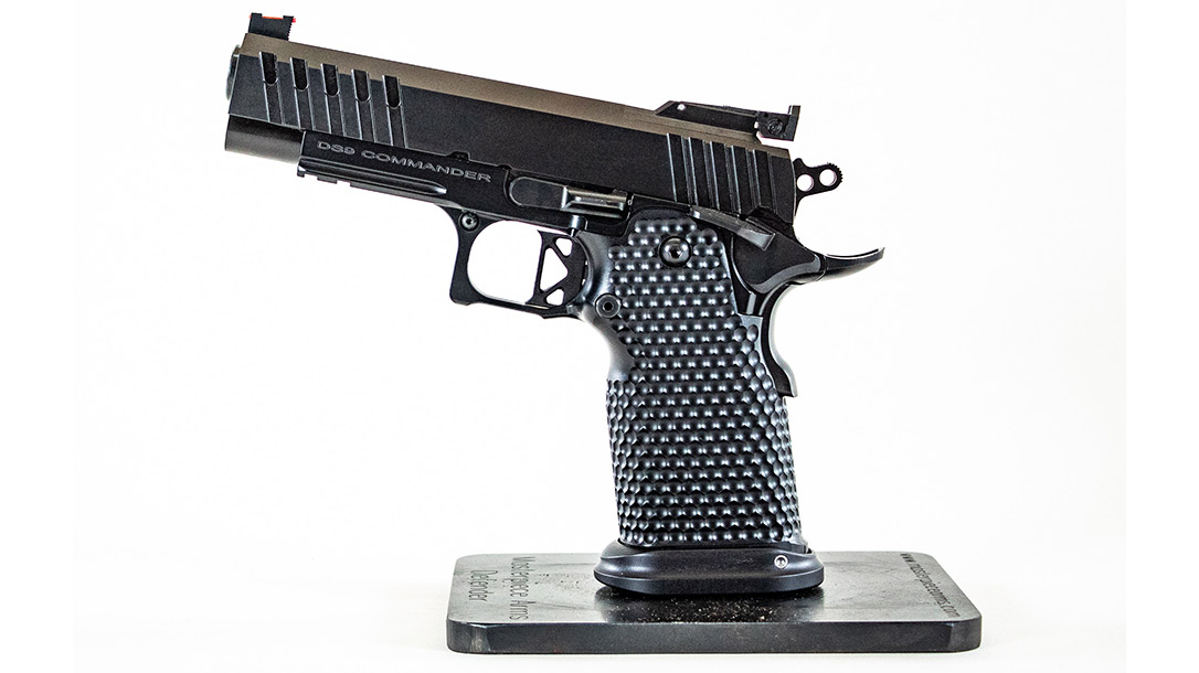 The DS9 Commander is a cornucopia of customization, beginning with a Koenig hammer, sear and disconnector for reliable, consistent action. Likewise, Wolff springs ensure a dependably long life. A custom machined flat faced aluminum trigger shoe releases the hammer with a 3.5-pound trigger pull. Although the Commander ships with a 3 lbs. 6oz – 2 lbs. 10 oz. trigger pull, it will relax to 3 pounds after break in. However, heavier pull weights are available.