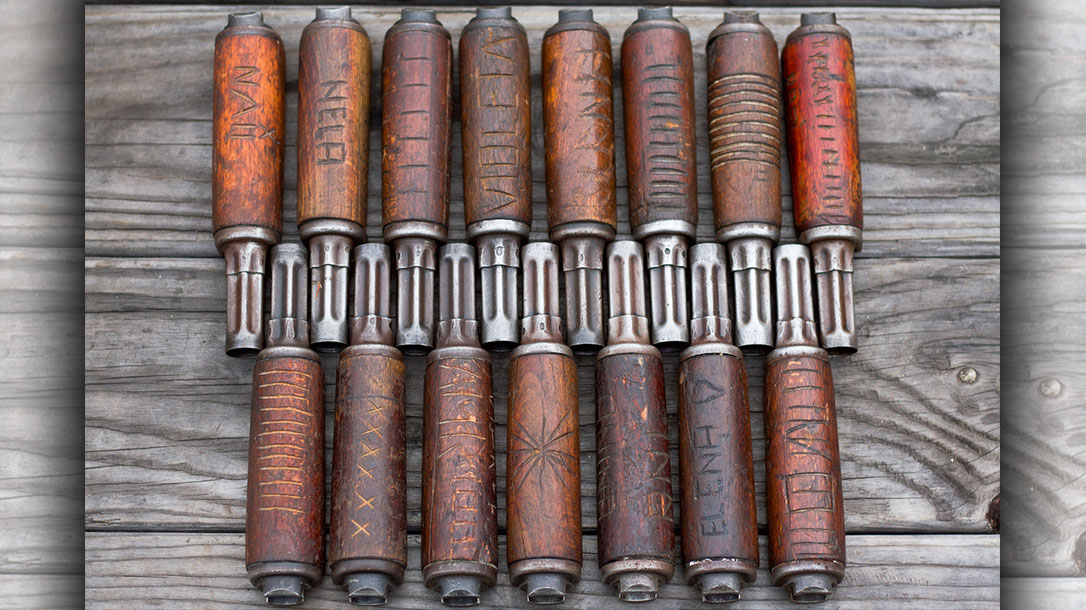 Where the rifles really speak to you is in the wood furniture. Each piece tells its own individual story via carved art, various markings, initials, stickers, etc. As a result, each rifle is a unique, one-of-a-kind piece of functional art. Likewise, MDC completely refinishes the rifles in a matte blue finish. However, to maintain the battlefield finish and aesthetic, the company distresses the finished pieces to round out the theme.