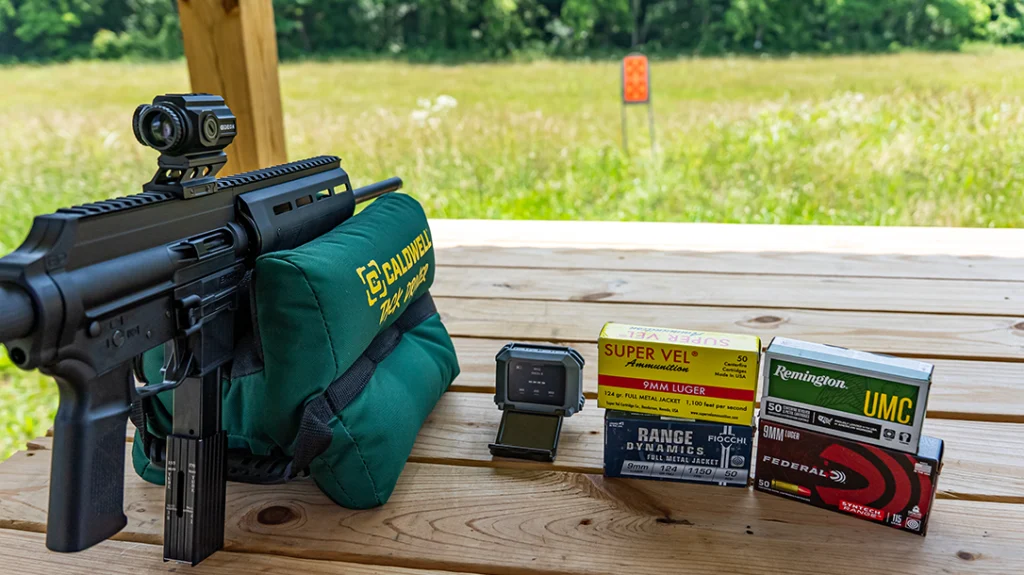 Ammunition testing was my favorite part of testing the EP9. I specifically used faster velocity 115-grain and 124-grain ammunition with higher velocities. Due to its bullet weight, 147-grain 9 mm ammo has a slower muzzle velocity which likely wouldn’t work the best with the EP9’s action. I shot Federal’s Syntech load with the flat-nose coated TSJ bullet. I assumed that the texture of the coating, combined with the flat nose of the bullet, would prevent it from cycling through the EP9. It cycled just fine. However, it was the least accurate load out of the EP9. The Fiocchi Range Dynamics ammunition grouped well out of the EP9, but the top performers were the Remington 115-grain FMJ and Super Vel 124-grain FMJ loads.