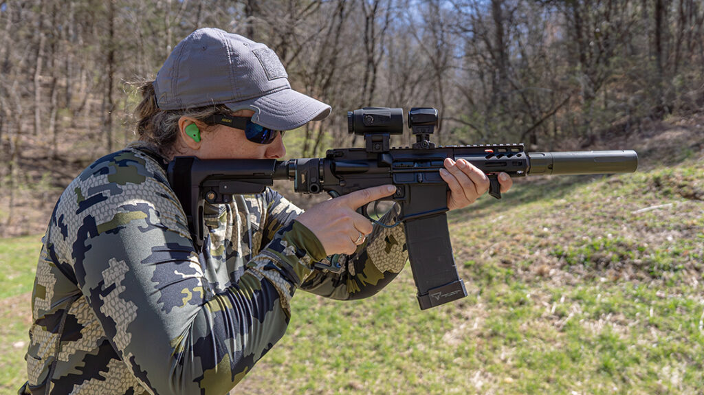 Deploying the MMX3 and MMX4 is simple: side-flip it down or side-flip it up. I tested these magnifiers on AR pistols with short barrels chambered in .223 and 300 BLK. The MMX3 or MMX4 does not move when flipped up in use or flipped down and out of the way. A good magnifier won’t accidentally flip up or down even when it experiences a high level of recoil or gun movement. Meprolight passed the test regarding the magnifiers staying in the shooter’s desired position while shooting and moving the gun around.
