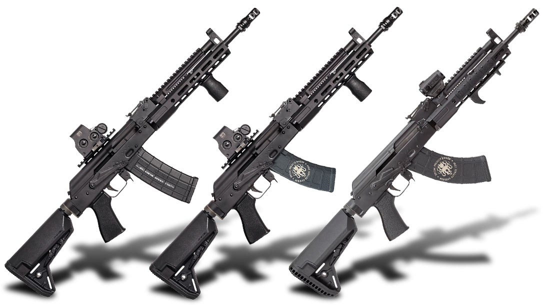 Chambered in your choice of 5.56×45 (NATO), 5.45×39, or 7.62×39, the PMC comes with a single 30-round magazine. Rounds are sent downrange via the new MDC-FCG exclusive drop-in, single-stage trigger. The trigger is designed to enhance the performance of AK-47 and AK-74 platforms with a noticeably shorter pull, according to the company.