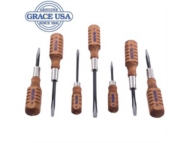Midwest Gun Works carries a variety of Grace® USA firearm specific screwdriver sets, including the Grace® USA 7 Piece Pistolsmith Screwdriver Set. These seven screwdrivers are handcrafted to precisely fit the screws found on Colt, S&W, Ruger and many other varieties of handguns. These screwdrivers are proudly made in the USA. The Grace® USA 7 Piece Pistolsmith Screwdriver set is available at MidwestGunWorks.com for $44.99.