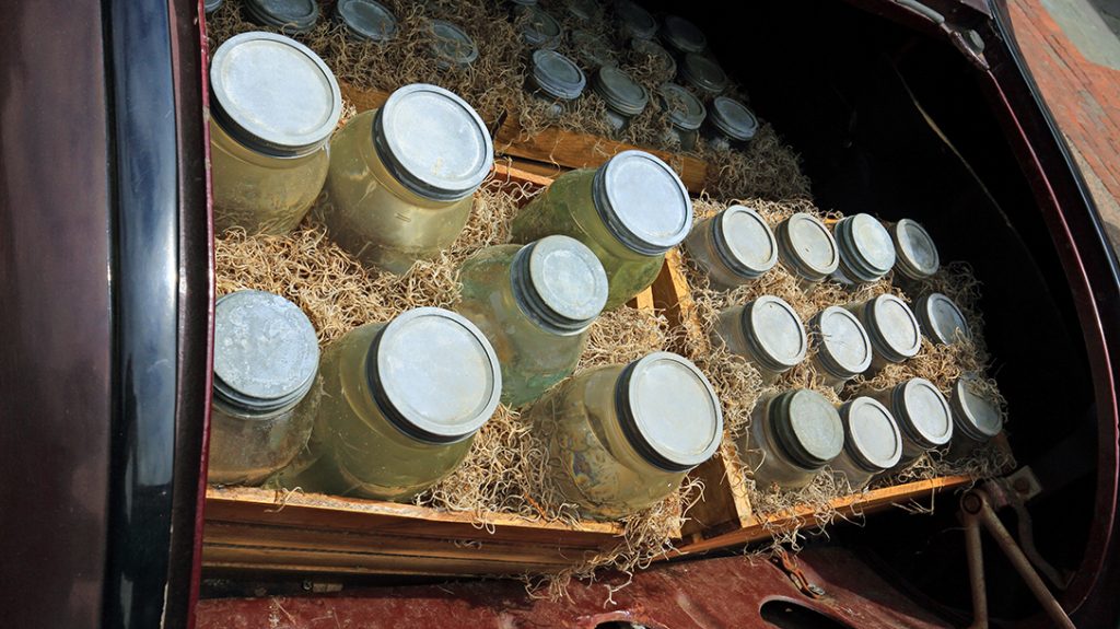 Making moonshine revolves around two different processes: fermentation and distillation. Fermentation is a chemical reaction that occurs when the yeast breaks down the sugar. One result of that reaction is alcohol. Distillation is the process of evaporating the alcohol at 172 degrees and collecting the steam before condensing it back into liquid form. As a friend described it to me at one point, it’s like baking a cake—a 180 proof cake.
