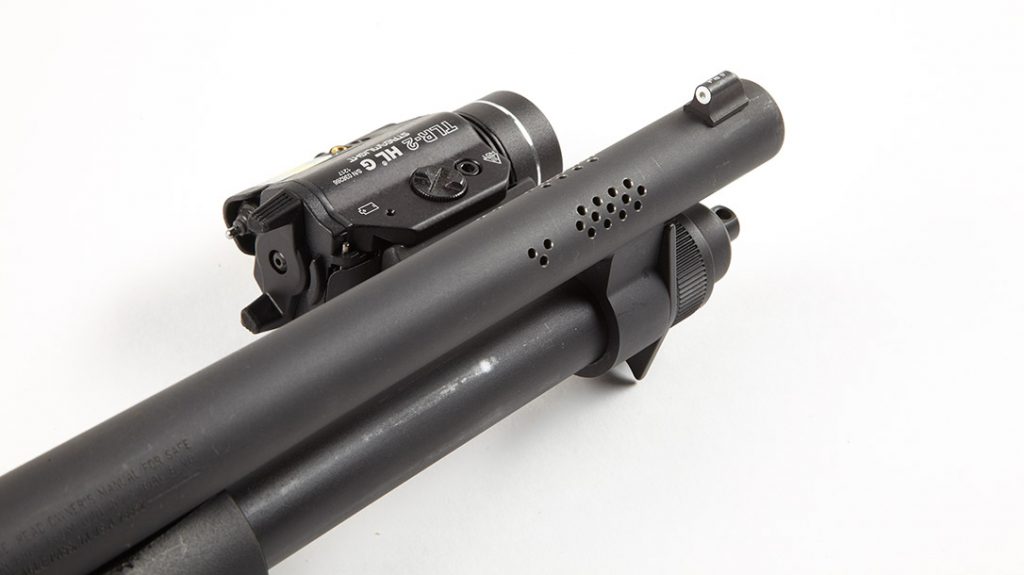 The 20-gauge Shockwave works well, even without accessories. Still, I like the TLR-1 HL or TLR-2 HL G (forward light or light/laser), GG&G’s Shockwave 20-gauge flashlight mount, XS Sights epoxy-attachment tritium front sight, Blue Force Gear Single Point Sling, Vang Comp Systems oversized safety and GG&G’s QD Rear Sling Attachment.