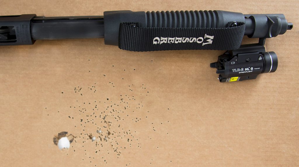 I tested the patterns of a variety of shotshells at 10 and 7 yards. The Remington Express XLR No. 5 shot produces patterns about 9 inches across, which is certainly not hall-filling. XLR buckshot was not readily available in my area, but both Remington and Winchester No. 3 buckshot delivered patterns around 6.5 inches.