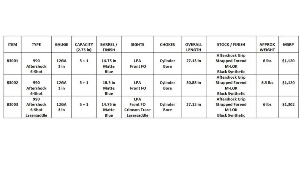 Mossberg 990 Aftershock Specs