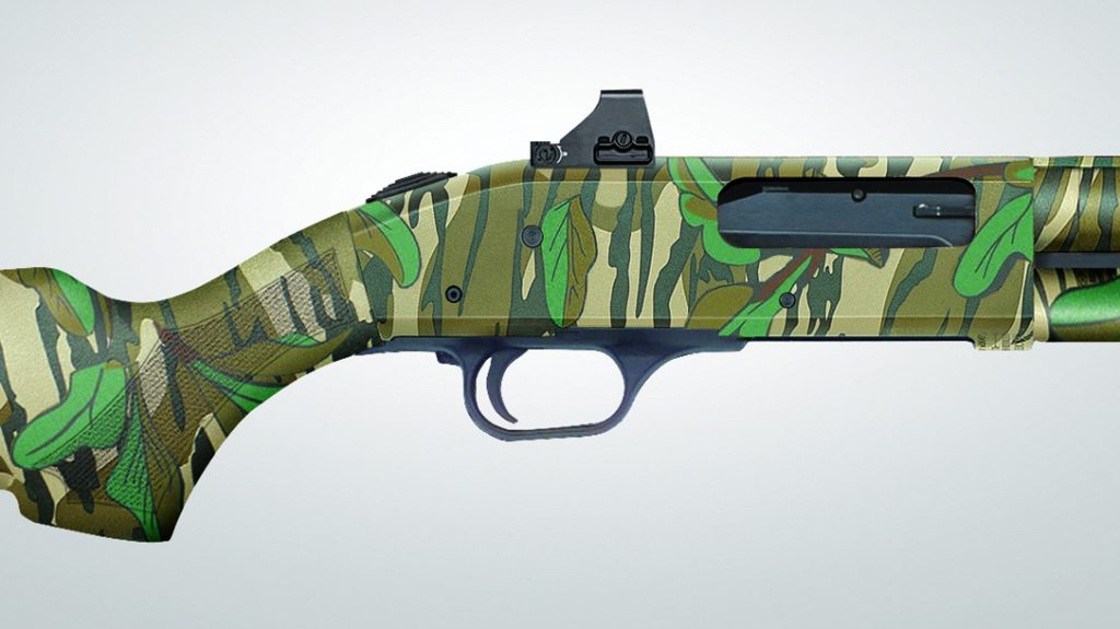 Three small versions of the 500 Turkey, including a Super Bantam with adjustable length-of-pull, and an 835 Ulti-Mag with 3.5-inch chamber include the Holosun HS407K. All four guns feature Mossy Oak Greenleaf full camouflage coverage and 20-inch barrels.