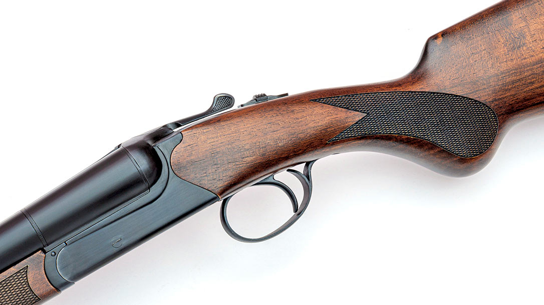 Stocks on the Coach Gun are fashioned from nicely figured walnut that has a hand-rubbed oil finish. The buttstock has a rounded, Prince-of-Wales pistol grip, which is finely checkered. There is also a traditional burnt-orange, solid recoil pad with a black spacer.