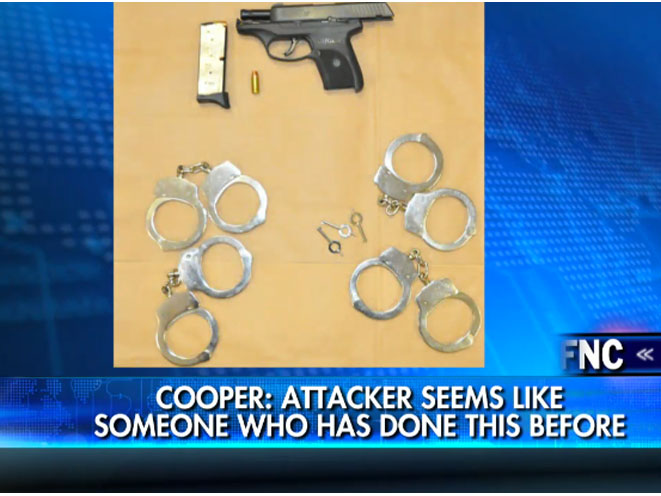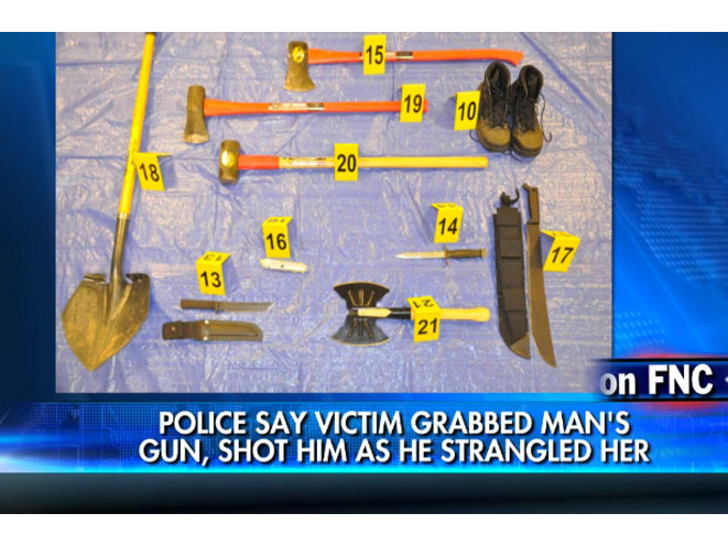“He had a machete, shovel, two axes, a bunch of knives, a double-headed ax, a bulletproof vest, numerous sets of handcuffs, as well as the firearm used to kill him,” Cooper told the Huffington Post.
