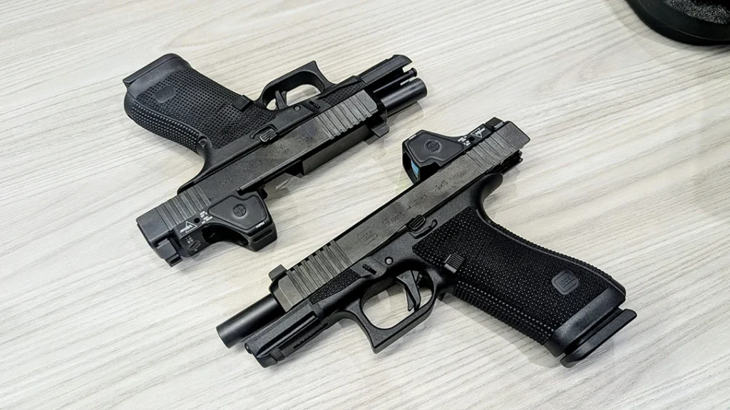 The meat and potatoes are what you’re here for, right? Let’s dig into it. The Glock Gen 6 will premiere with three models for the American market. We have the classic Glock 17, the fan favorite Glock 19, and the cult favorite, the Glock 45. This will be the initial rollout, and what guns are coming next in terms of models and calibers wasn’t up for discussion just yet.