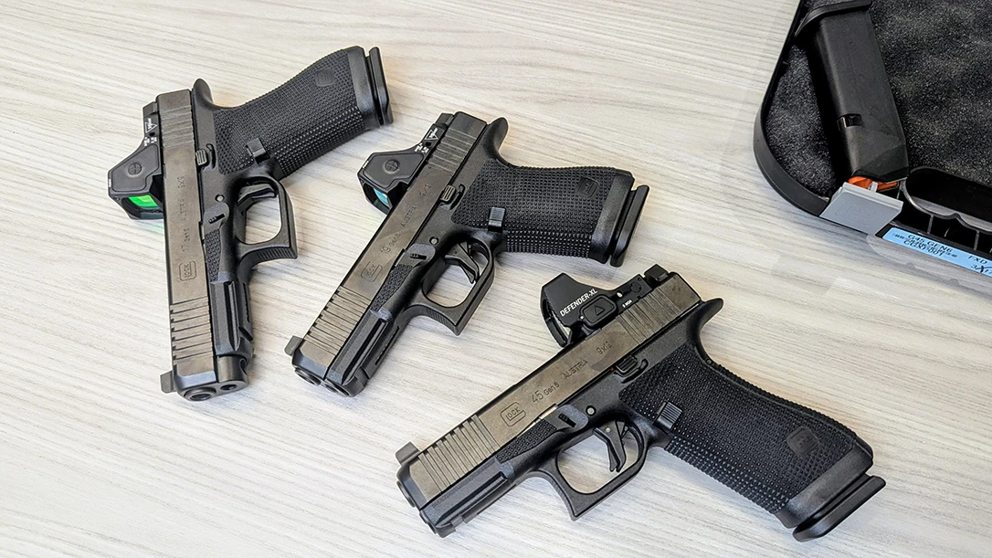 The meat and potatoes are what you’re here for, right? Let’s dig into it. The Glock Gen 6 will premiere with three models for the American market. We have the classic Glock 17, the fan favorite Glock 19, and the cult favorite, the Glock 45. This will be the initial rollout, and what guns are coming next in terms of models and calibers wasn’t up for discussion just yet.