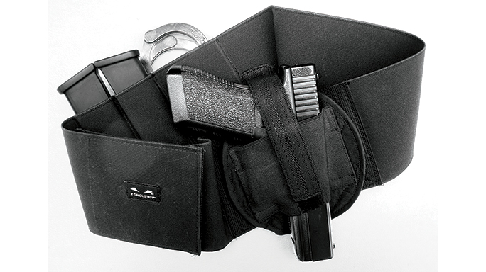 T-Sholster 360BBH: The new 360BBH (Belly Band Holster) from T-Sholster is an ambidextrous, multidirectional holster capable of carrying your firearm concealed at any type of cant. It’s a great choice for standing, walking, sitting, driving and even running. The 360BBH offers a Velcro-backed universal holster patch with a retention strap (for most autopistols and small-frame revolvers) as well as an integrated pouch with three universally sized magazine pockets and retention straps to keep your gear in place under most vigorous physical activity. The pouch may also be used to conceal a knife, flashlight, handcuffs, etc.