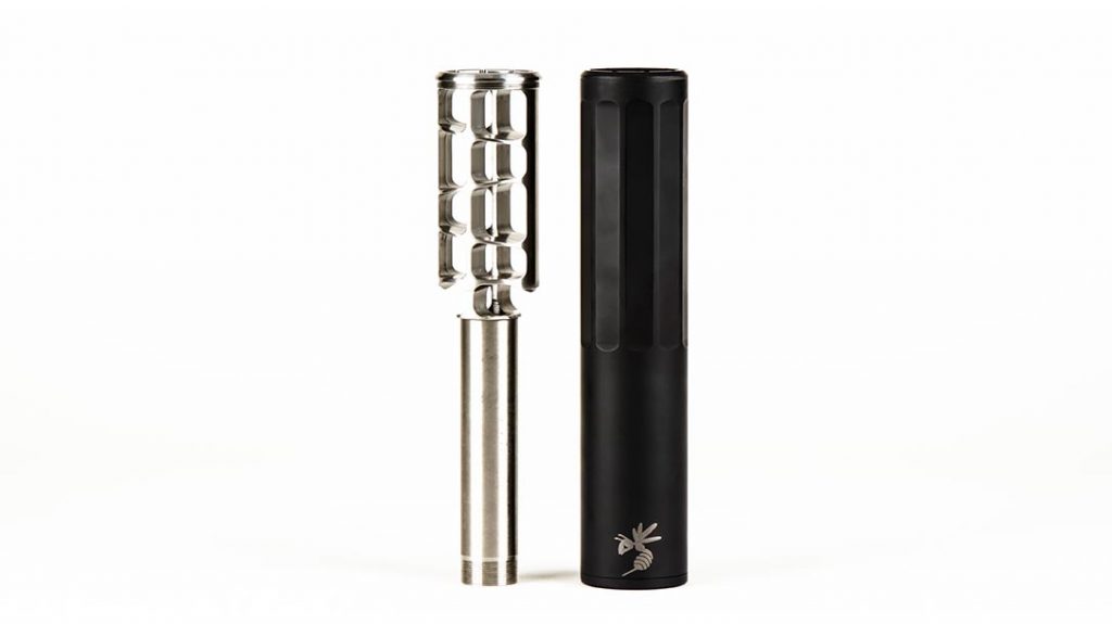 For those who have a short AR-style 9mm pistol or carbine, the AMTAC Hornet is worth a close look. The Hornet is 7.7 inches long, but extends the barrel length by only 4 inches. It’s rated for submachine gun use and is made using flat baffles machined from a single piece of 17-4 PH stainless steel. The stainless steel tube is finished in Cerakote. AMTAC rates its sound reduction as being up to 30 decibels, and the can weighs 16.6 ounces. (amtacsuppressors.com)
