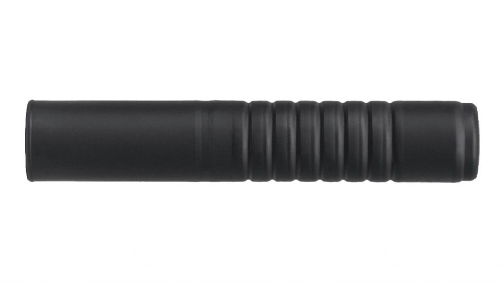 The Obsidian 9 is a 9mm version of Rugged’s Obsidian 45 with the same durable materials and modular design. This unit can be used in its short or standard configurations and can handle full-auto 9mm and subsonic 300 BLK shooting. The baffles and piston are made from heat-treated 17-4 stainless steel, the aluminum tube is anodized and Cerakoted. This suppressor uses a non-slotted piston and rubber O-rings at the piston and between the module to trap gas inside the can, thus reducing sound better than other designs. (ruggedsuppressors.com)