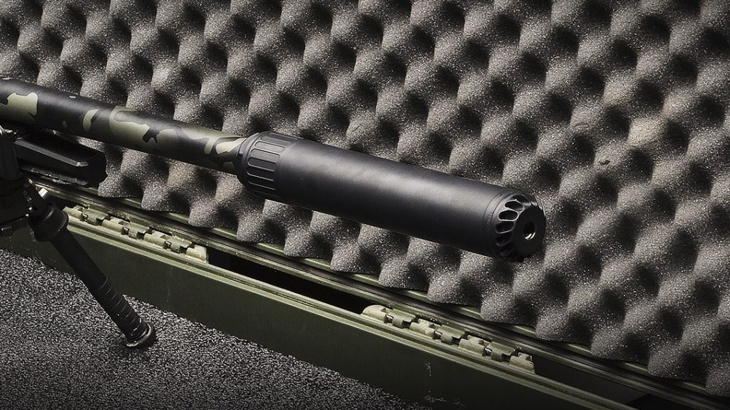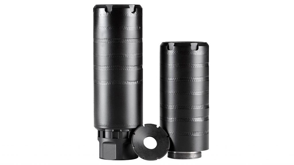 For 2018, Operators Suppressor Systems (OSS) redesigned its entire line to simplify construction and save on costs. The resulting units that are lighter, stronger, shorter, a bit quieter and much cheaper than previous models. The new HX-QD 762 is suitable for weapons from 5.56mm to .300 Win Mag, and it’s full-auto rated for use up to 7.62mm NATO. Made from heat-treated 17-4 stainless steel and Grade 5 titanium, it mounts flush onto an OSS muzzle brake that is designed to self-tighten during firing. (osssuppressors.com)