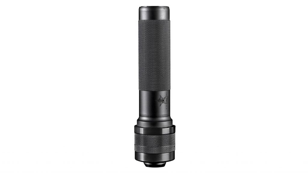 The new Chimera 300 is a versatile suppressor suitable for the 5.56mm NATO through the .300 Win Mag. The Chimera uses Stellite for the blast baffle, Inconel for the primary baffles and 17-4 or 316L stainless steel for the rest. The Chimera has no minimum barrel restrictions and is full-auto rated, according to the company. It measures a compact 6.9 inches long, 1.6 inches in diameter and weighs 20.1 ounces. It also uses the company’s ASR quick-attack mount and comes with a muzzle brake to fit it. (silencerco.com)