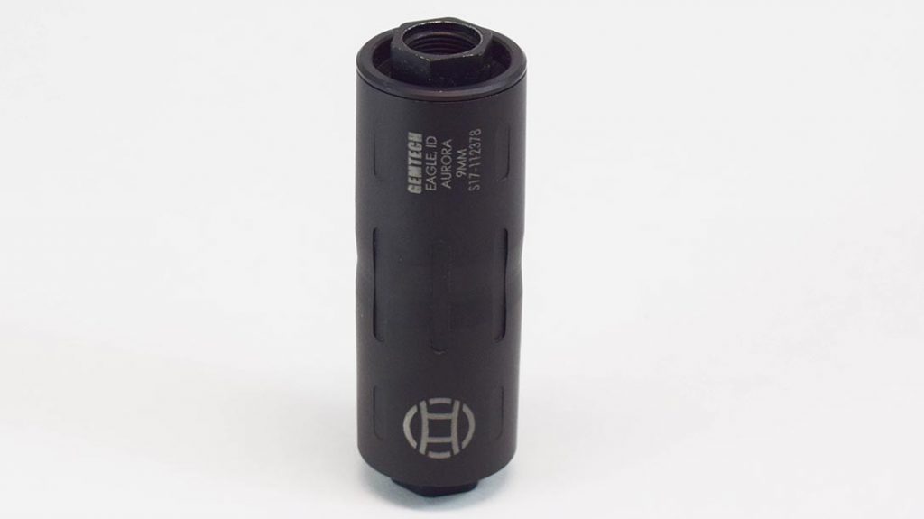 According to Gemtech, the Aurora was originally made for a pilot’s survival kit for the U.S. government. As such, it didn’t need to last long, but it did need to be compact. These parameters produced a commercially available follow-up that is only 3.5 ounces and 3.4 inches long. Instead of using baffles, it is filled with petroleum jelly and has eight neoprene wipes that sit between three spacers. The unit can be disassembled to replenish the ablative jelly or replace the wipes, which are effective at reducing sound but wear out after 30 to 40 shots. The Aurora II has 1/2×28 threading on one side and 13.5×1 LH on the other. (gemtech.com)