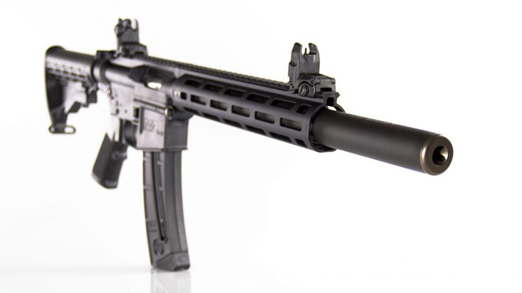 Innovative Arms makes integral suppressors for several firearms, such as the IASW model for the Smith & Wesson M&P15-22. Designed for ultra-quiet operation, the IASW ports the barrel to reduce the speed of high-velocity ammo to subsonic levels. This suppressor is made with a stainless steel monocore and aluminum sleeve, and it’s user-serviceable and full-auto rated. (innovativearms.com)