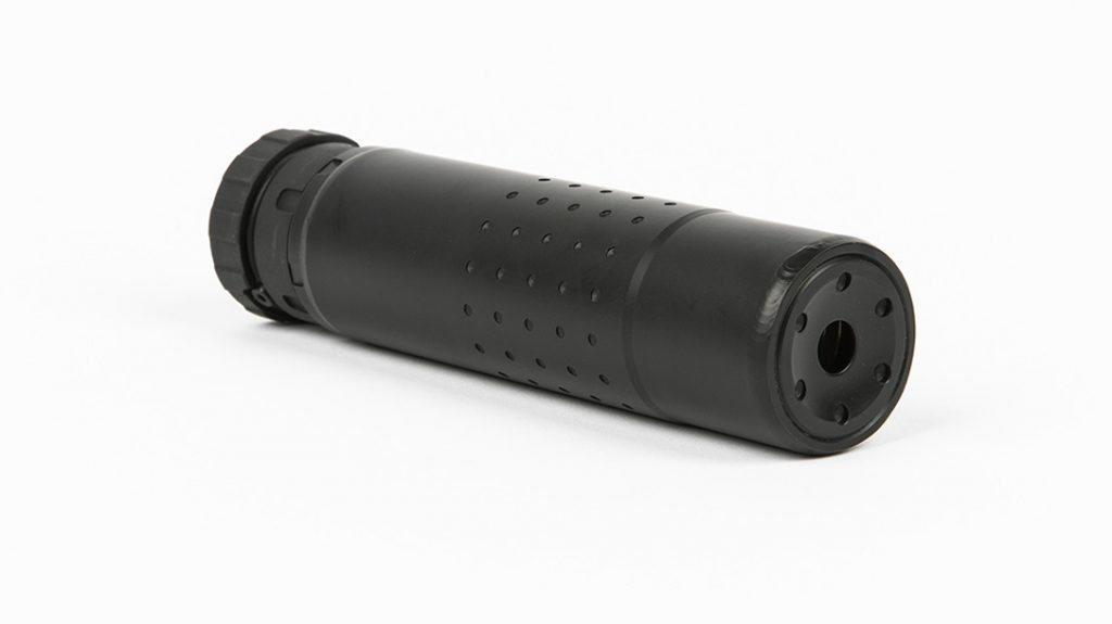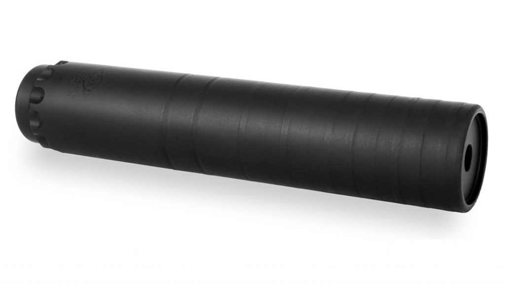 The .30-caliber Resonator from Yankee Hill Machine (YHM) is suitable for calibers up to .300 RUM with an MSRP of only $630. It uses a tubeless design where the baffles are fully welded together, saving weight and costs. YHM uses an Inconel blast baffle followed by heat-treated 17-4 stainless baffles, and rates this can for full-auto use with most calibers. The Resonator has a Cerakote finish, uses a QD mount and is supplied with a choice of muzzle device. It’s 7.83 inches long, 1.56 inches in diameter and weighs 16 ounces. (yhm.net)
