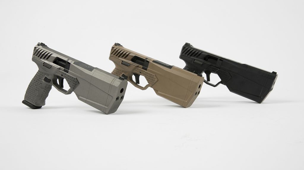 The Maxim 9 that debuted in 2017 is now shipping. This pistol has a polymer frame and uses a partially tensioned striker like the Glock. It holds 17+1 rounds of 9mm ammo but accepts larger Glock-type magazines. More importantly, the Maxim 9 is integrally suppressed thanks to a series of aluminum baffles with hardened 17-4 stainless steel cones held together with two rods like the system SilencerCo first used on the Salvo 12. It can be switched from a short 9.54-inch configuration to a long one (10.75 inches) by adding two baffles, and the entire baffle core can easily be disassembled for cleaning when needed. (silencerco.com)