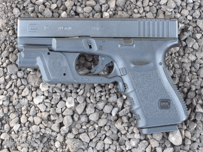 Laser sights are available in many formats. They can be integral with a pistol’s recoil spring guide under the muzzle (LaserMax), attached to the triggerguard or molded into the grips (Crimson Trace), affixed to the rear sight (LaserLyte) or mounted on an accessory rail (Viridian, for example). They can also be had in a combination unit with a white light (Streamlight, SureFire, etc.).