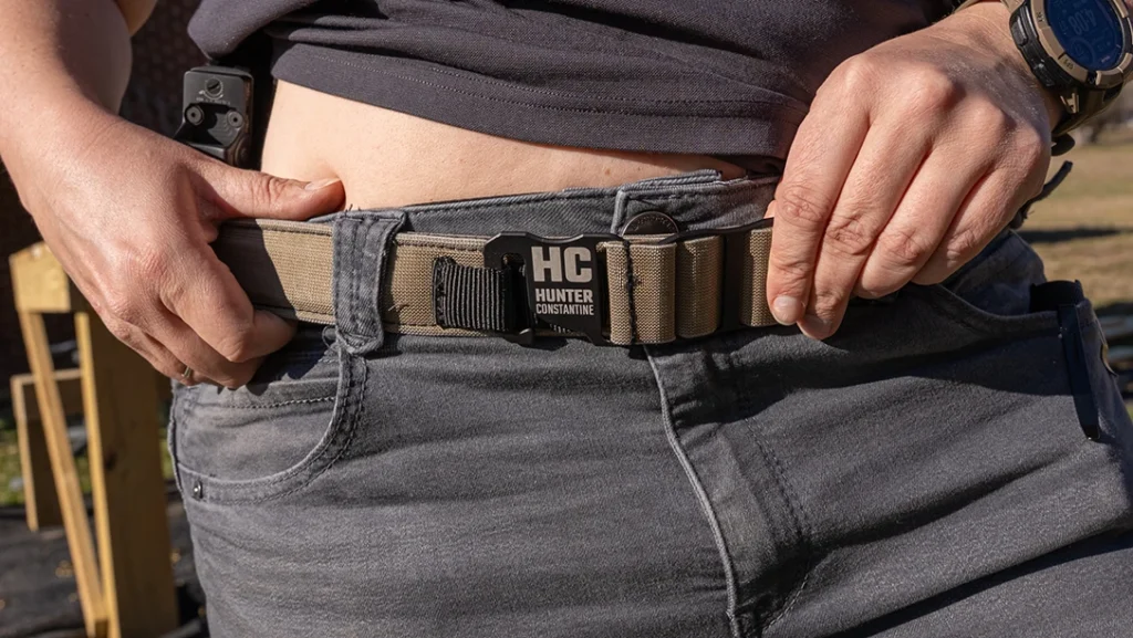 My final concern for the Double Agent pistol was keeping the fully loaded pistol supported in the holster on my waistline. A proper, rigid, and comfortable concealed carry belt is a must. I use the Constantine Carry Belt to carry a gun at the 4 o’clock position, but it can also be used for Appendix carry. This belt is designed with a rigid reinforced area to support the weight of a loaded firearm at whatever position you carry, with high-strength military-grade elastic that makes up the rest of the belt. The belt has two adjustment ladder loop positions to make it easy to adjust tension without removing the belt.
