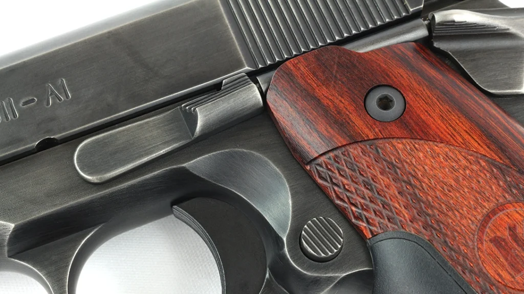 This brings us to the processes that don’t add as much to function as they do to finish. Being that I sent them a well-used pistol, the Parkerization was uneven at best. Therefore, they opted to remove it all and replace it with a smoke nitride finish. The finish was then hand-distressed to remind me how long I’d had the gun.