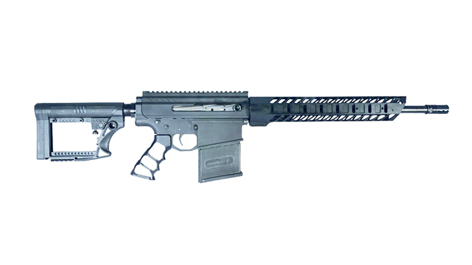 The grip, also skeletonized, is made by Tactical Dynamics. It’s made of hardcoat anodized aluminum and is finished to match the black surfaces on the rest of the carbine. At the tail end you’ll find a polymer, five-position Luth-AR MBA-4 stock with a non-slip buttplate. The lower receiver uses a proprietary, synthetic 20-round magazine. Blocked 10-rounders for hunting and other capacity-restricted purposes and locations are also available.