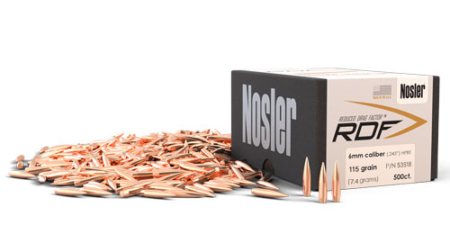 “With the introduction of this bullet, distances that were once too far to consistently and accurately shoot are now a reality,” said a Nosler release. “This 115-grain bullet was specifically designed to function in 6mm cartridges with barrel twist rates of 1-7.5 inches or faster and like all RDF bullets, is not intended for big-game hunting.”