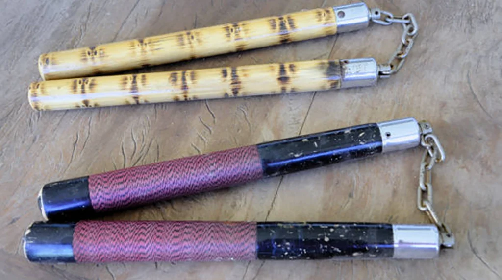 When it comes down to a possible life or death conflict, it’s likely nunchaku would be used in a manner uncharacteristic to the way they are viewed in martial arts competitions or on film. This would mean there would be no spinning tricks, no figure-eight twirling, no rolling the chucks around hands, necks or waists, and no passing the nunchaku from one hand to the other. Instead, hard downward swings would be used, targeting key areas like the head, elbows, or knees.