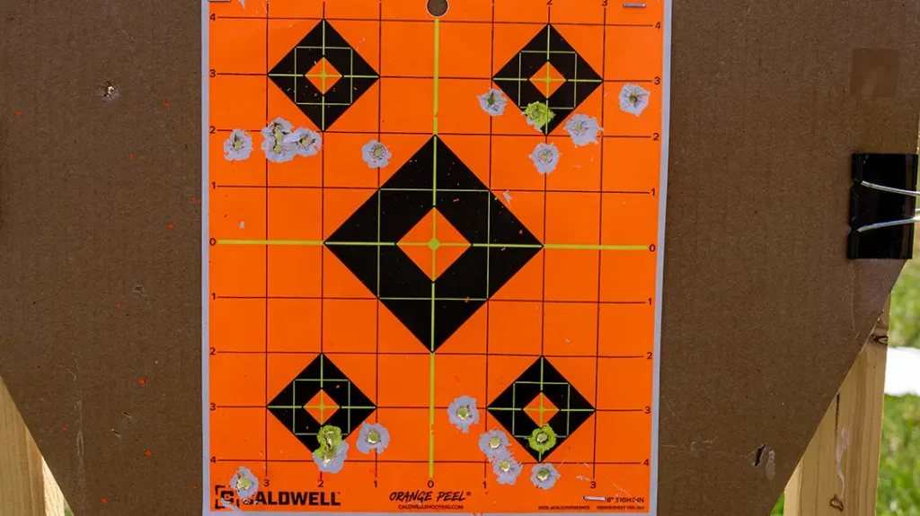 I was still surprised by the spread, especially after the accuracy I got out of the Compact Pro pistol. I’m unsure if the optic lost zero throughout testing, but that could have affected the shot groups. All the ammunition passed the chronograph test for shooting sports requiring a minimum power factor.