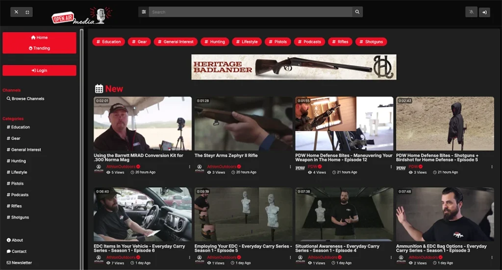 At Open Air Media, we understand that the firearm community is vast and varied. That’s why we’ve organized our content into specific categories to cater to every niche: