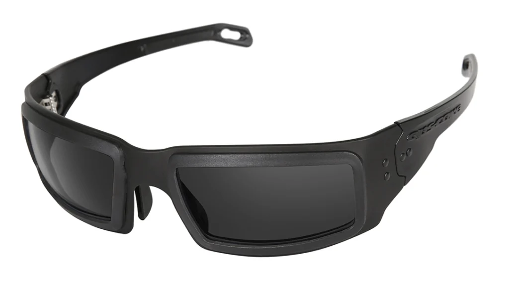 At first glance, the Mk2 keeps things clean and understated—black frame, low profile, no tacticool nonsense. Look closer, though, and the engineering shows. A wrapped aluminum frame front provides ballistic strength where it counts, while thin nylon temples keep the eyewear comfortable enough for all-day wear and compatible with helmets, ear pro, comms, and other headborne gear.