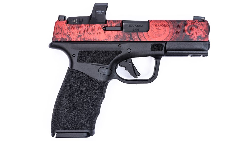 Ladies and gentlemen, the Ballistic Custom Challenge is back again! It has been almost a year since I’ve had the pleasure of showing our readers work from the top customizers in the business, and it seemed fitting to bring back the pros at Outlaw Ordnance to show off some new coating tricks on a pair of rowdy troublemakers: Springfield Armory’s new Hellion 5.56 bullpup rifle and upsized Hellcat Pro 9mm wearing a Hex Wasp red-dot optic.
