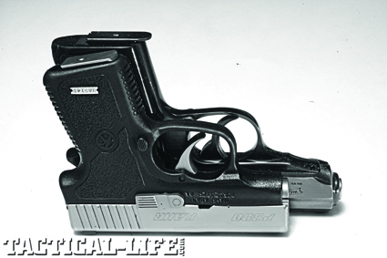The PM45 has everything we expect from a modern concealed-carry pistol: it hits where you point it, it’s small and therefore more likely to be carried, and it’s chambered for a serious fight-stopping cartridge. While it’s usually wise to carry the largest pistol you can reasonably conceal, for those circumstances that demand a physically small handgun, the PM45 has a significant size advantage over other .45 ACPs. Find out more about the entire Kahr Arms line at 508-795-3919 or visit their website at kahr.com.