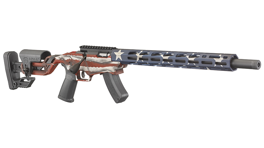 The first four offerings in this new series feature attractive American Flag finishes. The series includes AR-556 MPR, Ruger Precision Rimfire and PC Carbine rifles, as well as the AR-556 Pistol. Additional distributor exclusive models featuring state flag Cerakote finishes are also available. These models include the SR22 pistol with North Carolina state flag Cerakote finish, SR22 pistol with Arizona state flag Cerakote finish and Ruger Precision Rifle in 6.5 Creedmoor with a Texas state flag camo dip.