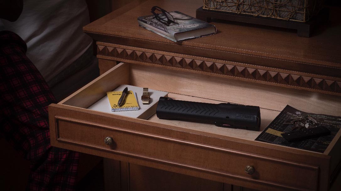 Powered by a CO2 cartridge, the unit is effective out to 60 feet, PepperBall claims. It holds up to five projectiles that can be shot in rapid succession without having to cock the device. In addition, the LiteLite sports a safety tab. Deactivation triggers a laser that deters would-be bad guys. It also helps the user rapidly acquire targets.
