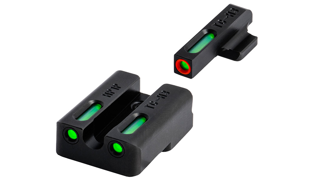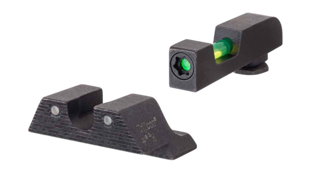 Tritium is a radioactive element that glows on its own and doesn’t need any external light source to function. It’s safely encapsulated in a vial, and generally has a lifespan of at least 10 years. Most companies offer a Tritium front sight with either a standard rear sight or some sort of Tritium rear as well.