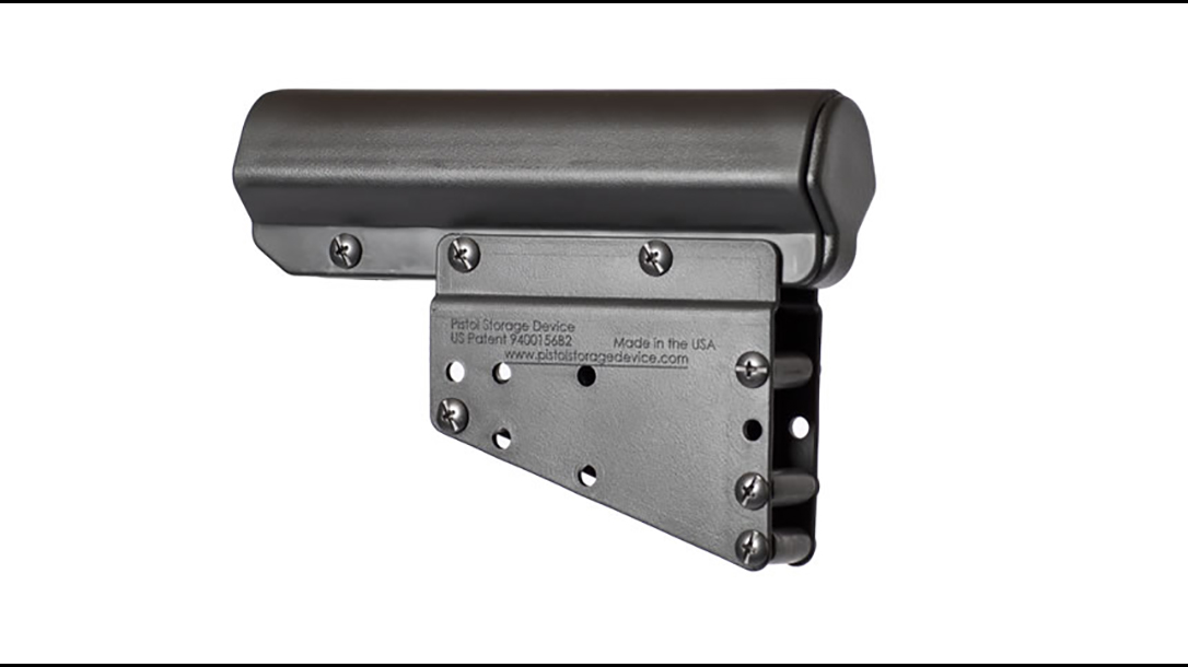 The Pistol Storage Device is made from DuPont Zytel material and tips the scales at less than eight ounces. It features nitrided steel hardware for durability and corrosion resistance.